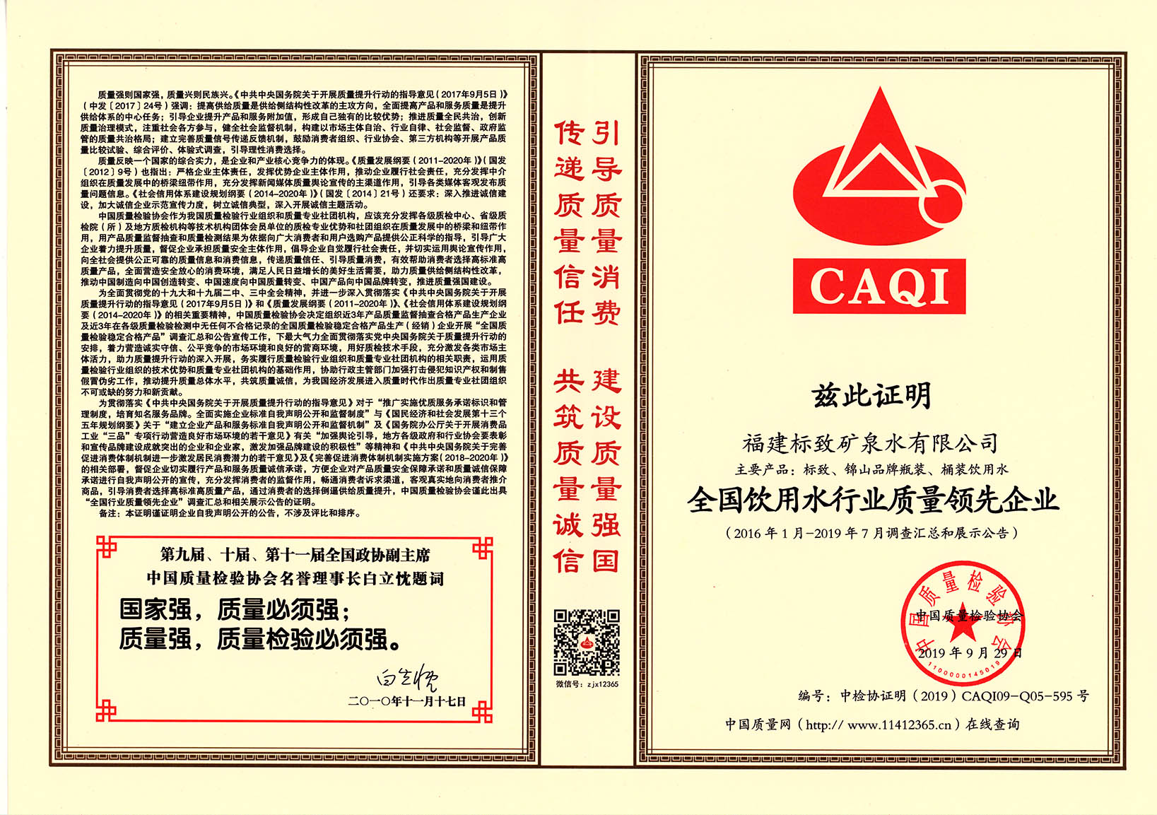 • 2020-03-252019年9月,標(biāo)致公司榮獲“全國飲用水行業(yè)質(zhì)量領(lǐng)先企業(yè)”稱號(hào)